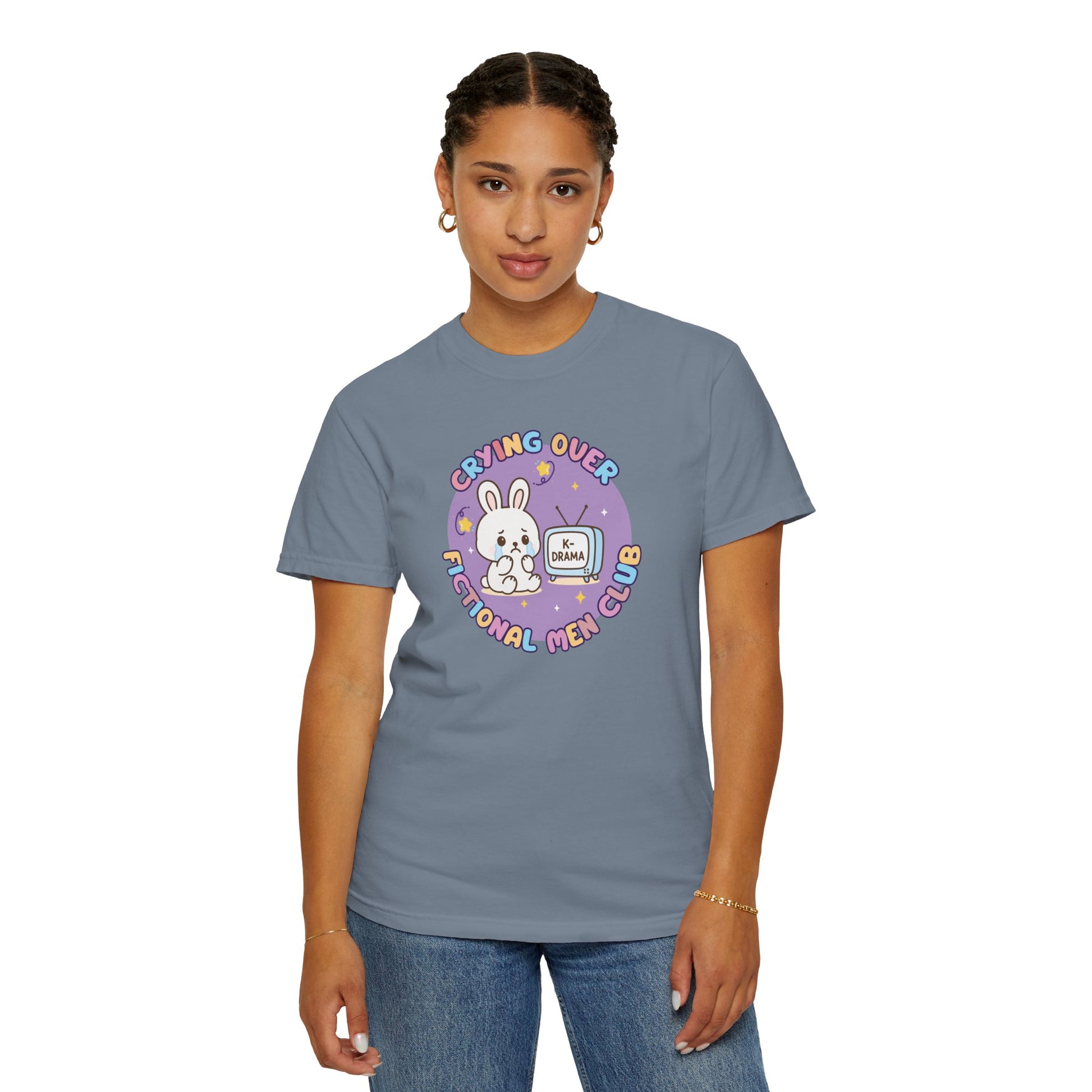 The Crying Over Fictional Men Club T-Shirt is your badge of honor, blending comfort, humor, and a soft aesthetic that makes it perfect for K-drama fans and daydreamers alike. Crafted from premium 100% ring-spun US cotton, this tee feels as cozy as your favorite blanket during a late-night binge-watch.