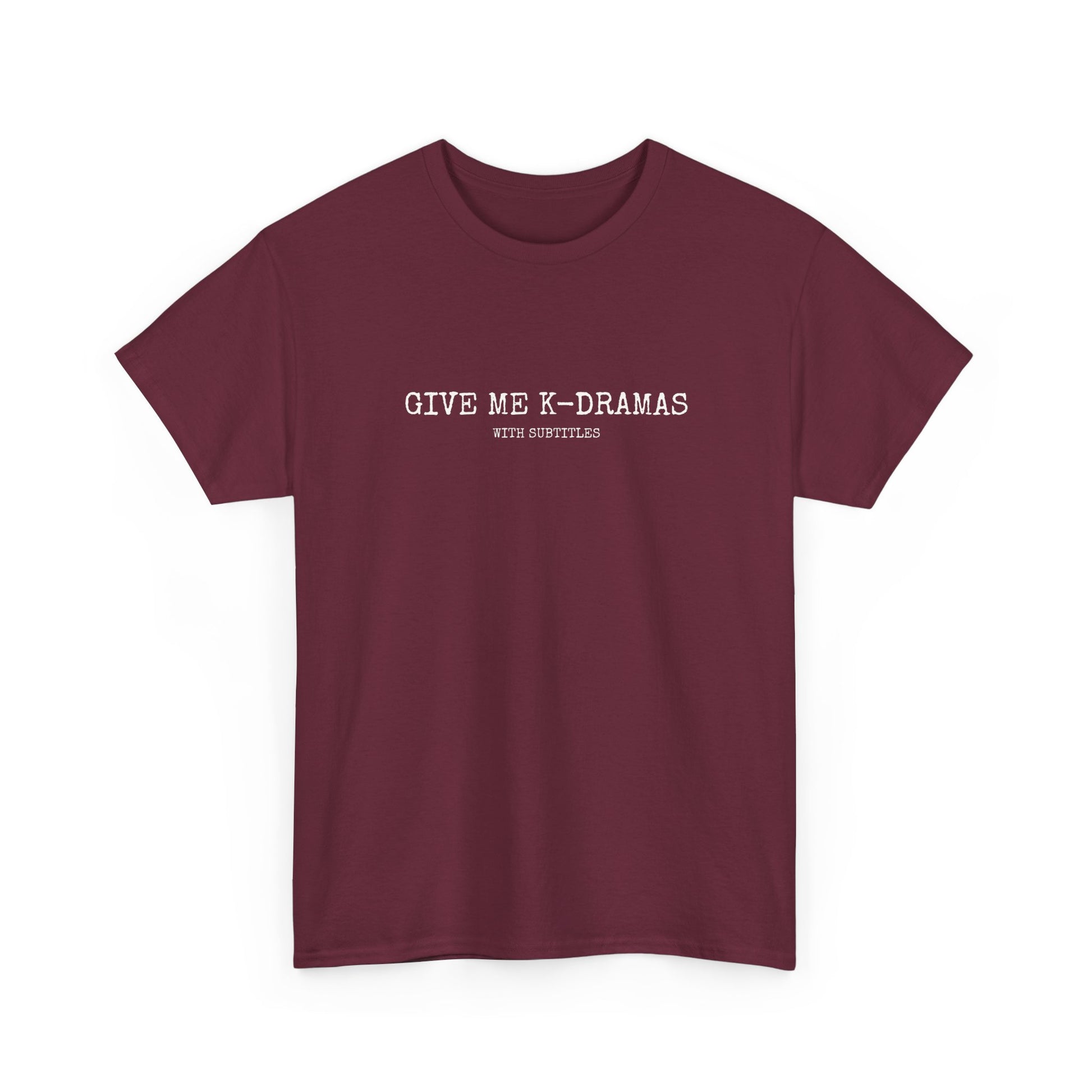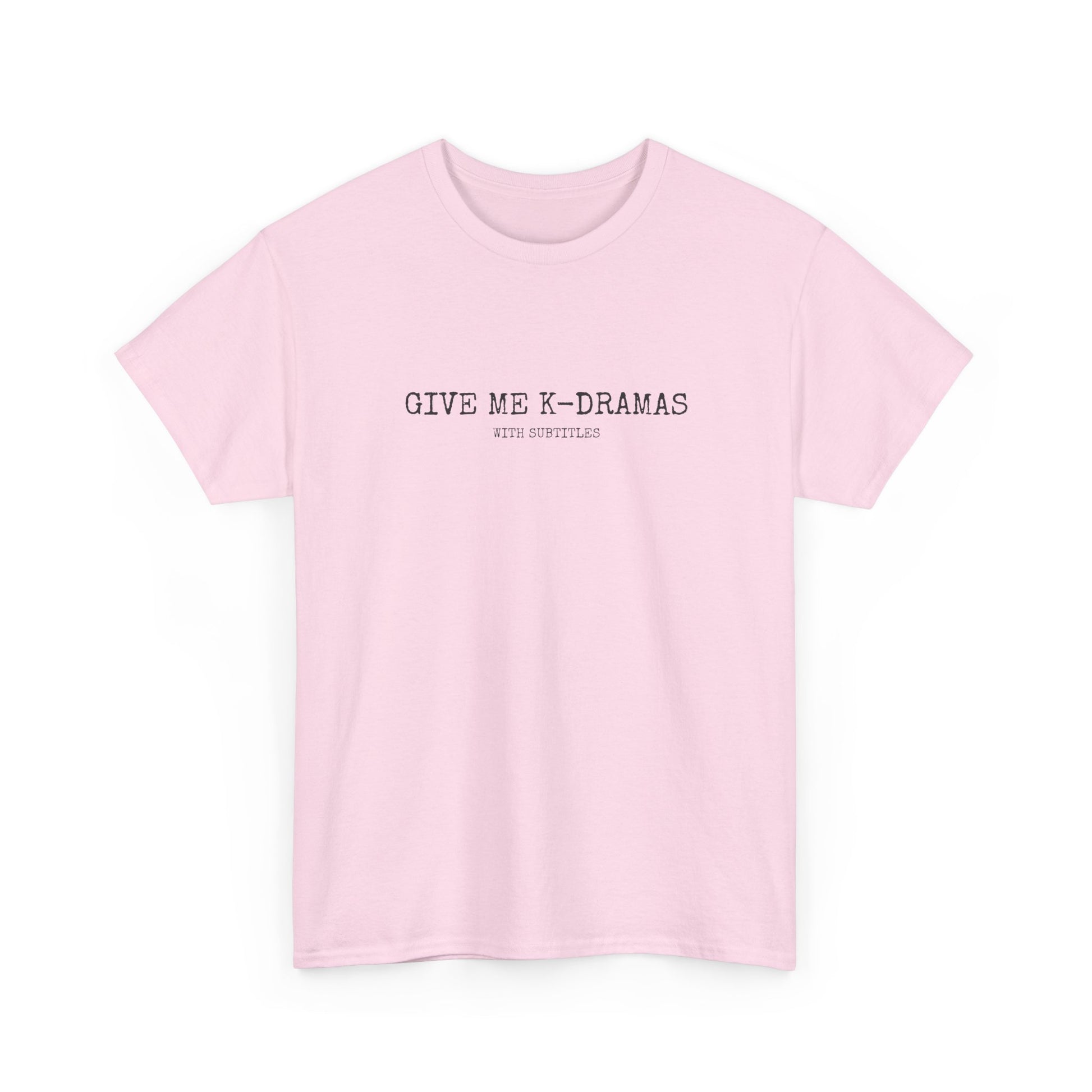 The Give Me K-dramas With Subtitles T-shirt is for every fan who lives for emotional rollercoasters, poetic OSTs, and perfect translation timing. Whether you’re crying over a second lead or rewatching your comfort show for the fifth time, this tee gets it.