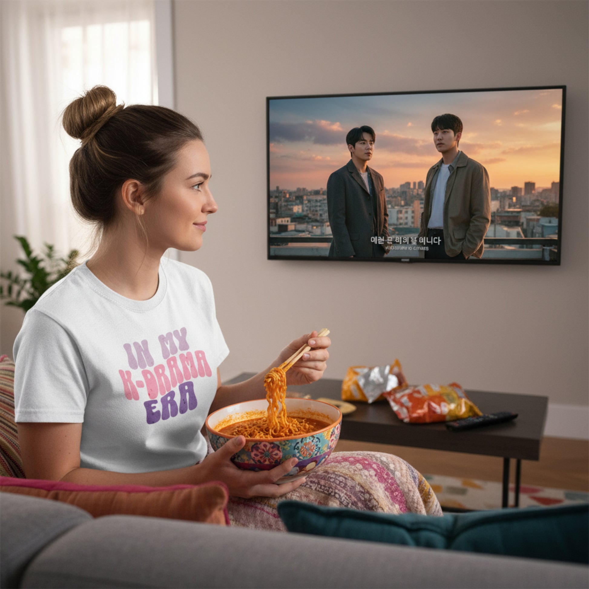 The In My K-drama Era Tee is made for the soft-hearted, comfort-seeking K-drama fan who feels every storyline like it’s her own. Whether you’re crying over a second lead, daydreaming through an OST, or channeling your favorite main character at the café, this shirt is your official era uniform.